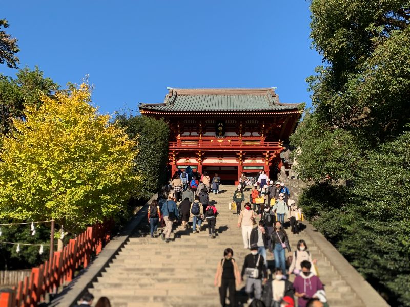 当日は雲ひとつない晴天。今年の大河ドラマでも話題の鎌倉、そして一大観光スポットでもある鶴岡八幡宮ですから、平日でもかなりの賑わいを取り戻しているようでした。