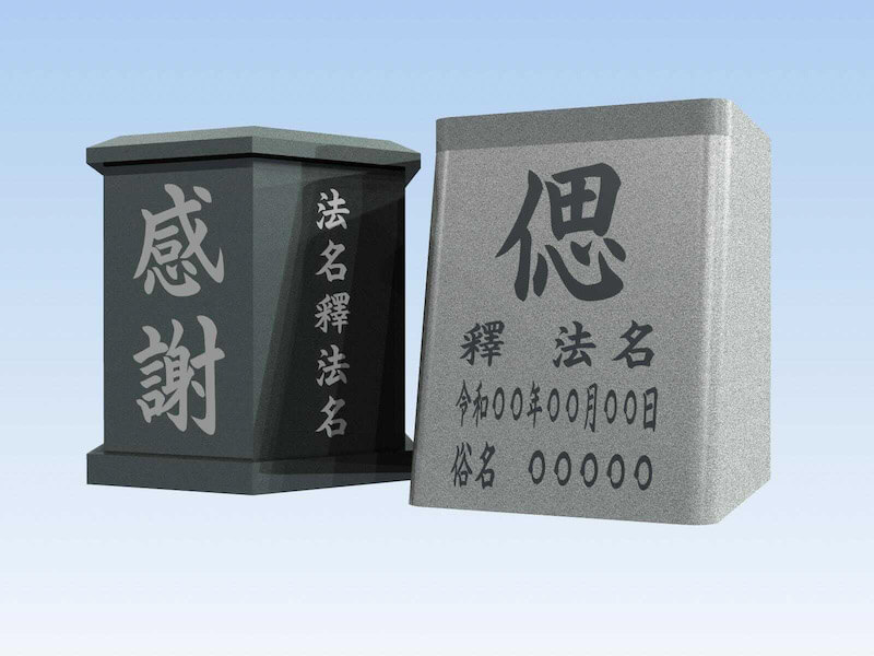 初期費用には、以下のいずれかのデザインの個別の墓石代(彫刻費込み)、入仏法要(四十九日法要)が含まれます。