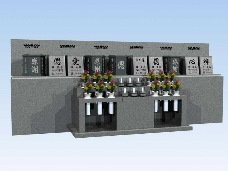 初期費用がかかりますが、法名や戒名を記した個別の墓碑と骨壷を納める、その人だけのお墓が持てるということです。一般のお墓の相場の1/3〜1/5程度と考えられますが、サイズ感もそのくらいのコンパクト設計です。