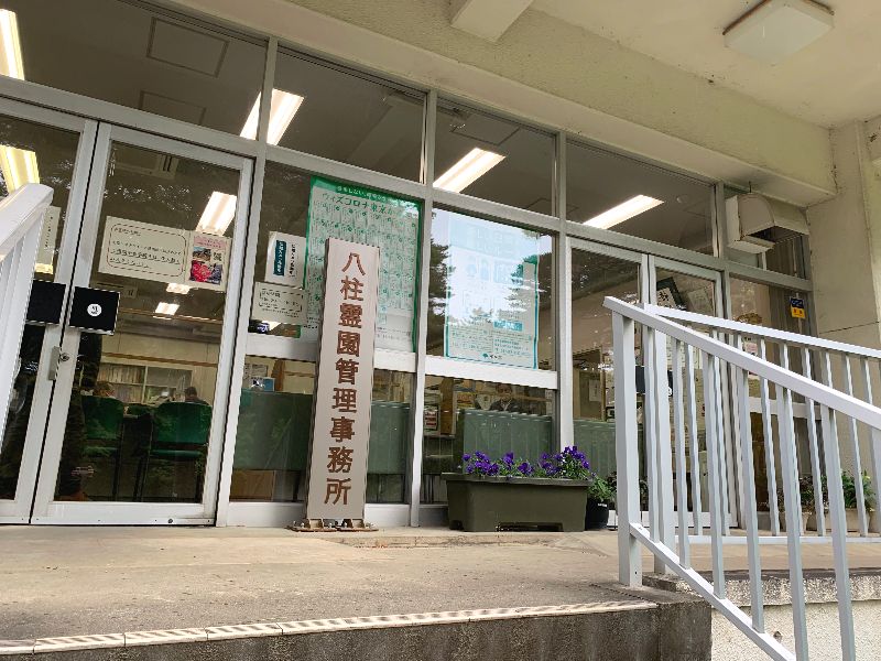 八柱霊園管理事務所は正門から入って左手、東屋の奥にあります。