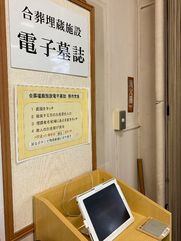 先の合葬埋葬施設の電子墓誌です。故人のお名前で検索でき、埋葬日を確認できるようになっていました。施設からは少々離れていますが、平成25(2013)年開設時からデータ管理されていることが分かるので、安心できますね。