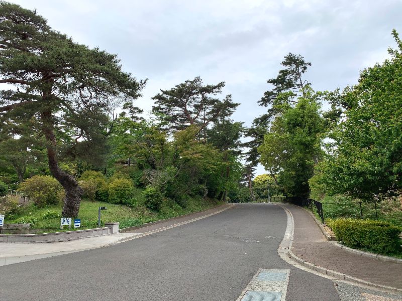 地図上で見るとわかりやすいのですが、この道路は上から見てひょうたん型となっていて、ゆるやかなカーブが坂道を和らげている効果もありそうです。区画内でもこのひょうたん道路があることが、やさしい印象ももたらしてくれていました。
