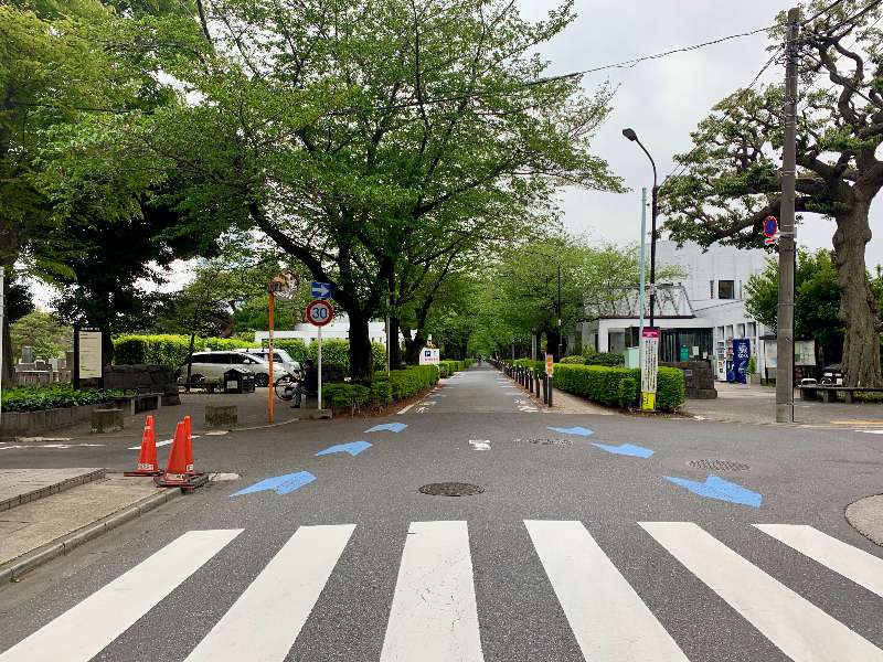 青山通り方面、西麻布方面のそれぞれから一方通行となっていて、中央付近の都道と交わる交差点で合流します。歴史を遡ると、昭和15年の都市計画として東西をつなぐ必要があったため、道路の敷設には墓所の移転が伴ったそう。現在は乃木坂トンネルから表参道方面への抜け道として、なくてはならない生活道路になっているようです。