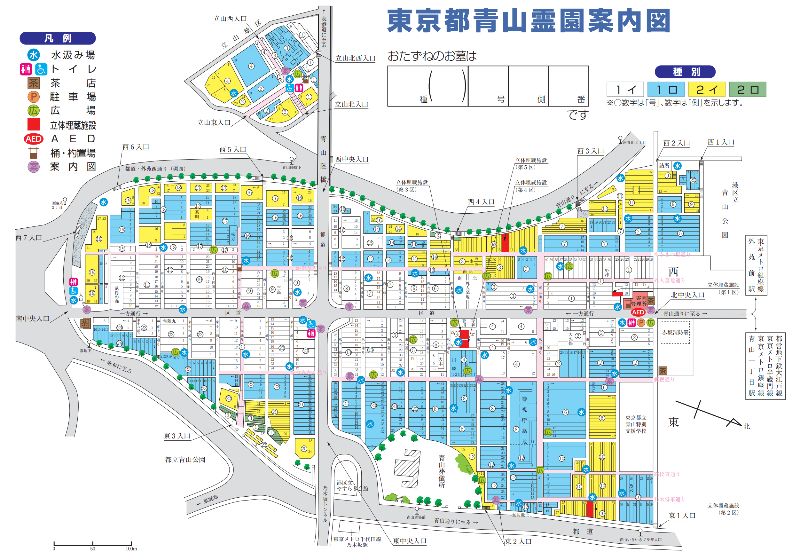 青山霊園には、一般埋蔵施設のほかに立体埋蔵施設もあり、第1区〜第5区までが敷地内に点在しています。