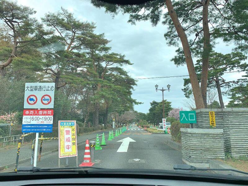車ですと、正門からそのまま入って行けます。左手にすぐ管理事務所があるので寄って行きます。