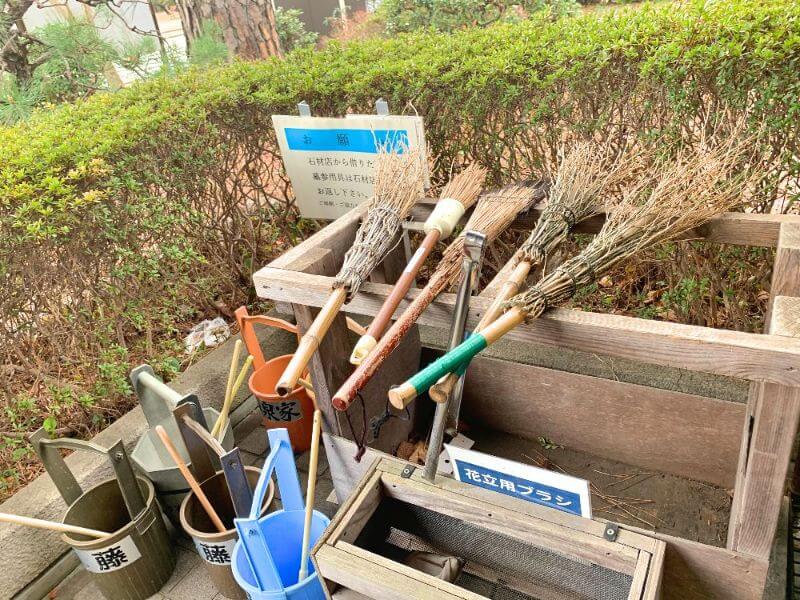 事務所内は、各種受付や相談窓口でわからないことはなんでも聞けそうな、市役所のような雰囲気でした。事務所前には、お掃除道具が借りられるスペースがあります。