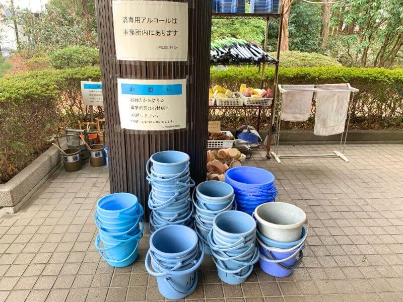 園内は全体的にキレイに整備され、管理も行き届いていると思います。各区画ごとに水汲み場、下げ花置き場があり、トイレも園内6箇所にあります。桶、杓置き場は管理事務所付近にしかないので、注意が必要です。