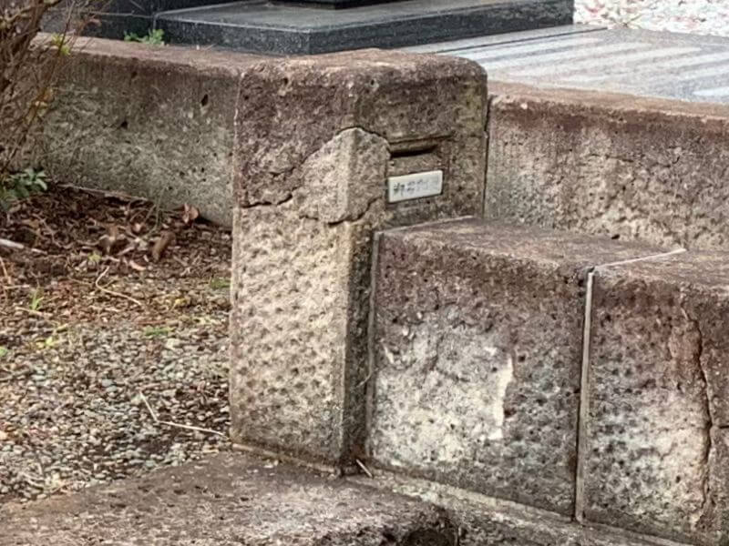 また名刺受けの石質をよく見てみると、墓石と明らかに違う混色の荒目の石でちょっと浮いていたこともあり、あとから建てられた可能性が高そうです。(機会があったら親戚に尋ねてみたい)