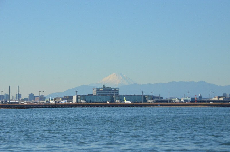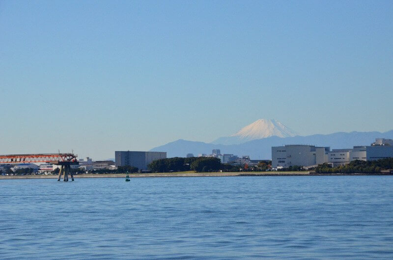 途中、富士山がくっきりと見えてきました。冬の澄んだ空気だからこそ、東京湾からも富士山を望むことができるのですね。やはり雪を被った富士山の姿は格別です。