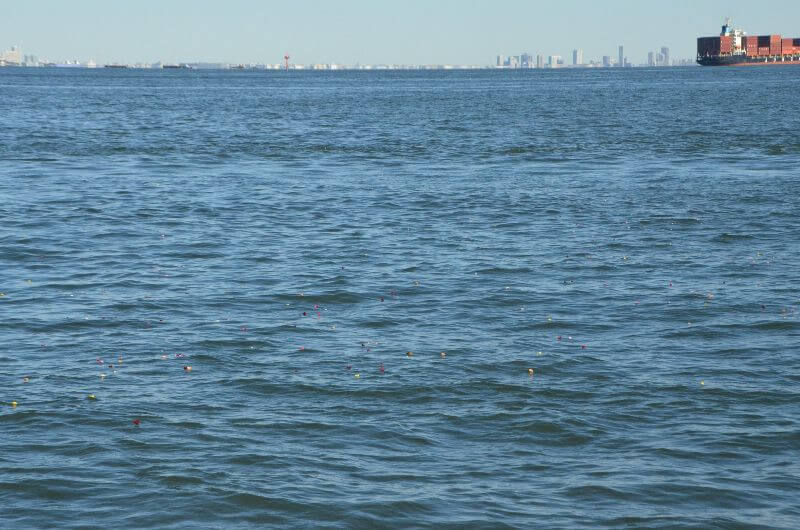 この海域を選ぶ人のポイントとしては、ここが羽田空港の展望デッキから望めることなのだそうです。海側から見ても、空港管制塔や展望デッキのあるターミナルが見えますから、おおいに納得しました。
