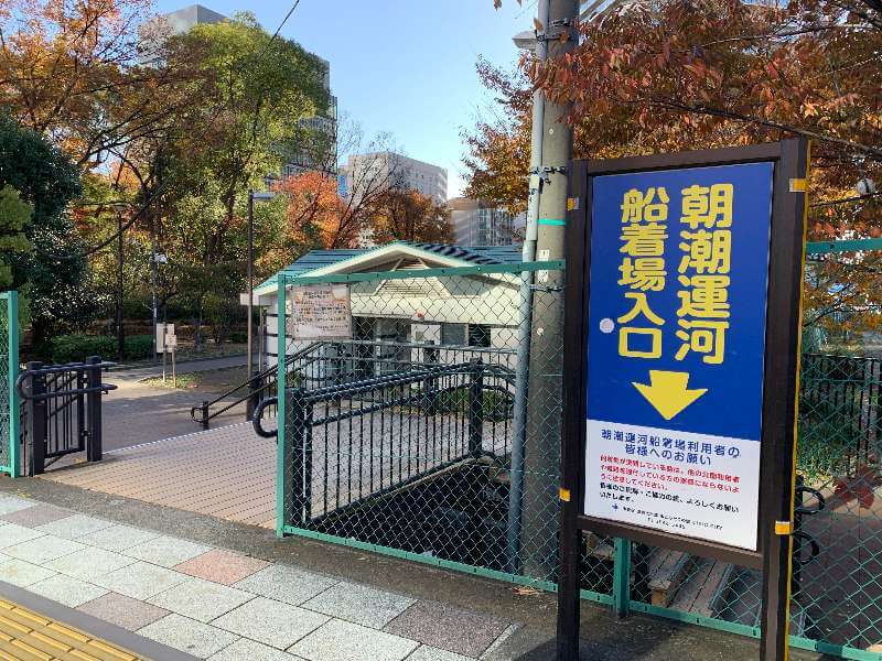 集合は、中央区晴海の朝潮小型船乗り場でした。都営大江戸線の勝どき駅から晴海通りを数分歩き、黎明橋を渡った先に船着場への入り口があります。