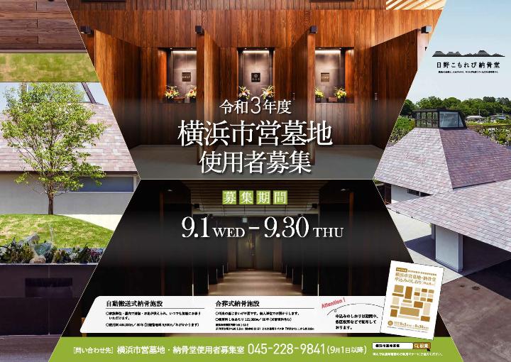 今年7月7日に、横浜市より【令和3年度横浜市営墓地・納骨堂の使用者募集について 】発表されました。例年この時期に、年に一度の使用者募集が告知されるようです。