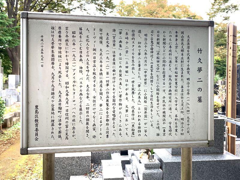 ここには「大正浪漫を代表する画家」として、豊島区教育委員会による説明板がありました。